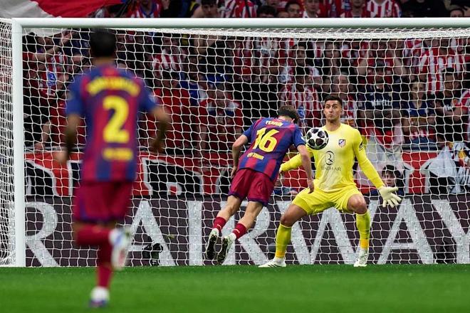 4月15日凌晨,马竞主场对阵巴萨的欧冠四分之一决赛次回合。上半场,巴萨攻击型中场费尔明·洛佩斯(Fermín López)试图头球攻门,马竞门将穆索(Juan Musso)出击扑救,结果靴底直接踹中费尔明面部。